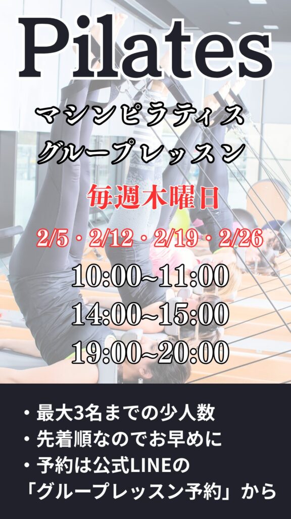 少人数制で行う、マシンピラティスのグループレッスンです。